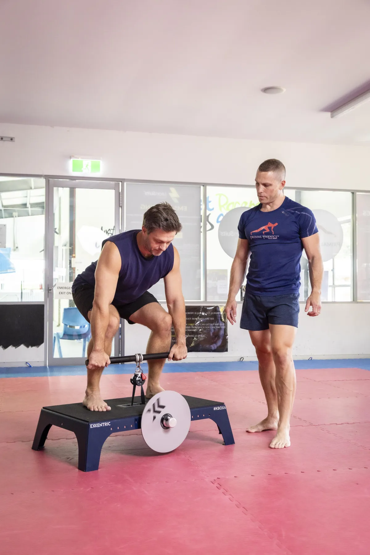 The ultimate Primal Warrior strength class utilising Exxentric flywheels, dumbbells and PrimalThenics exercises in a small group class to deliver exceptional training, focused on developing versatile and functional strength.